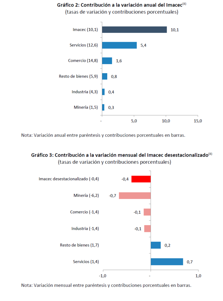 Por su parte, la caída del Imacec desestacionalizado fue explicada por el desempeño de la
