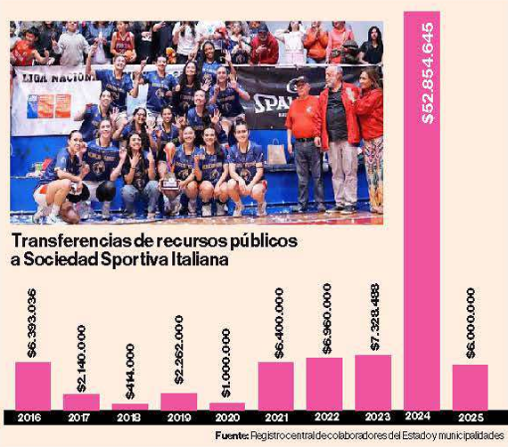 Casi ocho veces más que el promedio de los últimos ocho años recibió la sociedad Sportiva Italiana en 2024, en cuya rama de basquetbol femenino jugaba Paula Carrasco, la pareja del Presidente Gabriel Boric y con quien tendrá un hijo en las próximas semanas.